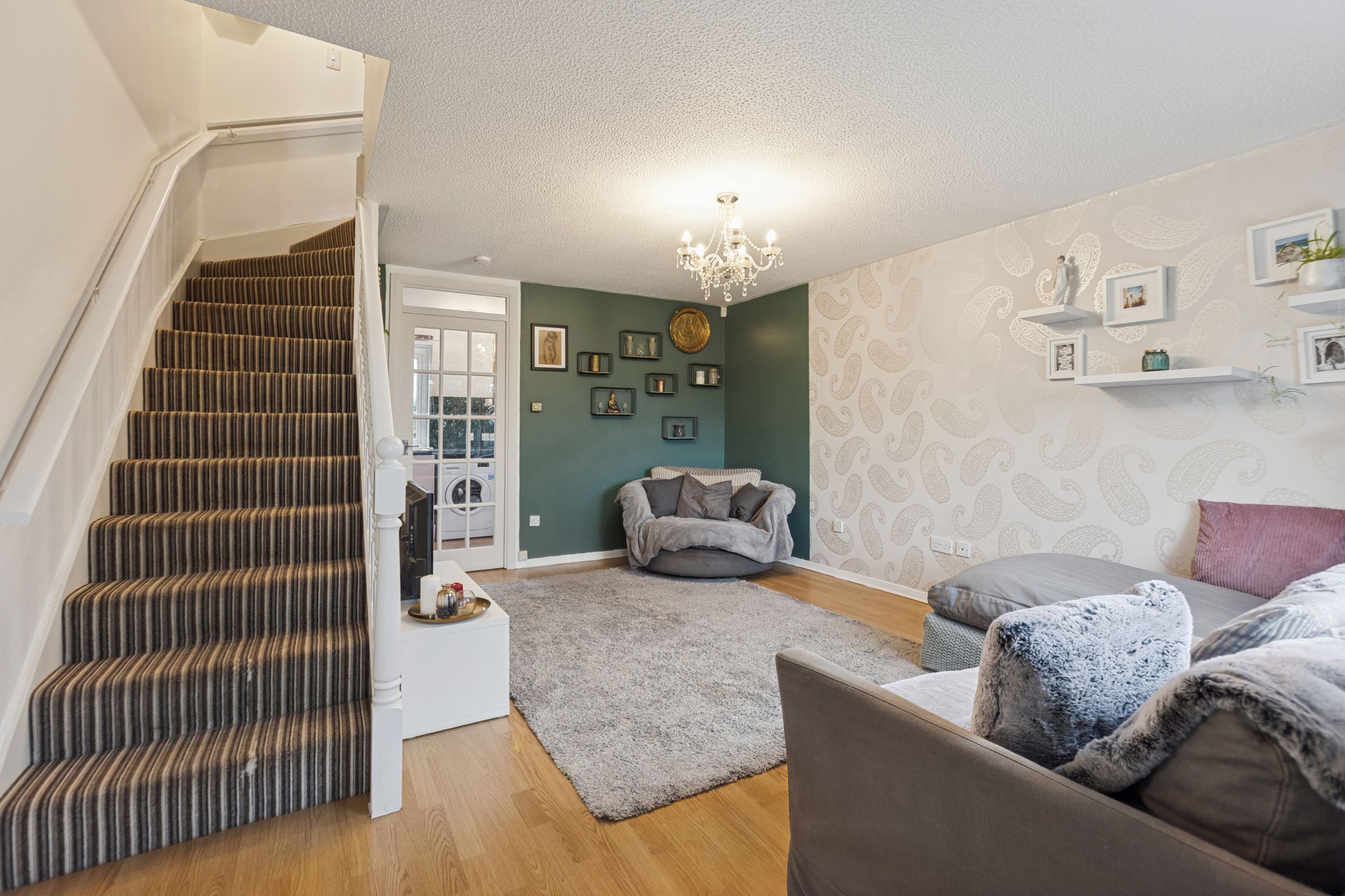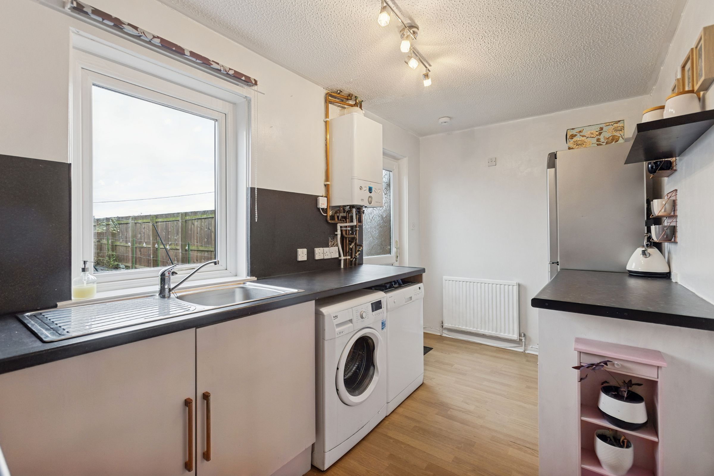 A well-presented mid-terraced house over two floors in a popular, modern and well-established development. The house is quietly positioned within the sought-after Liberton area. Internally the property is neutrally decorated and in good condition throughout. It is entered via a vestibule with the bright sitting room to the front and the well-equipped kitchen with direct garden access to the rear.  Upstairs are the two bedrooms (the master with built-in wardrobes) and the family bathroom. Externally there is residents parking as well as private front and south facing rear garden. The property is fully double glazed and benefits from gas central heating.