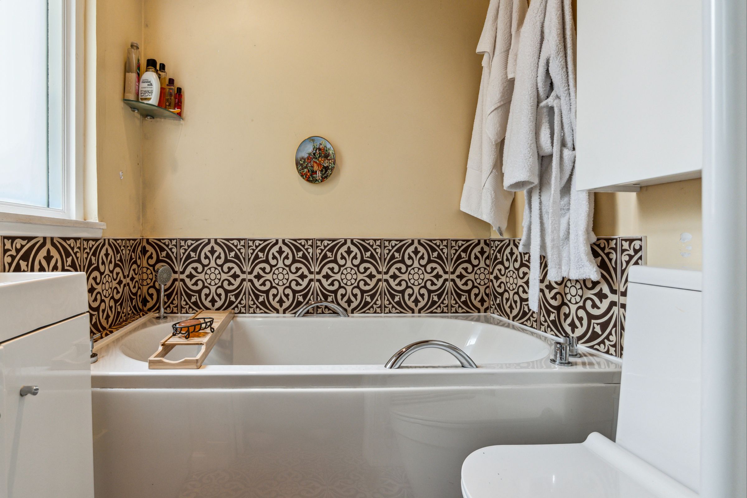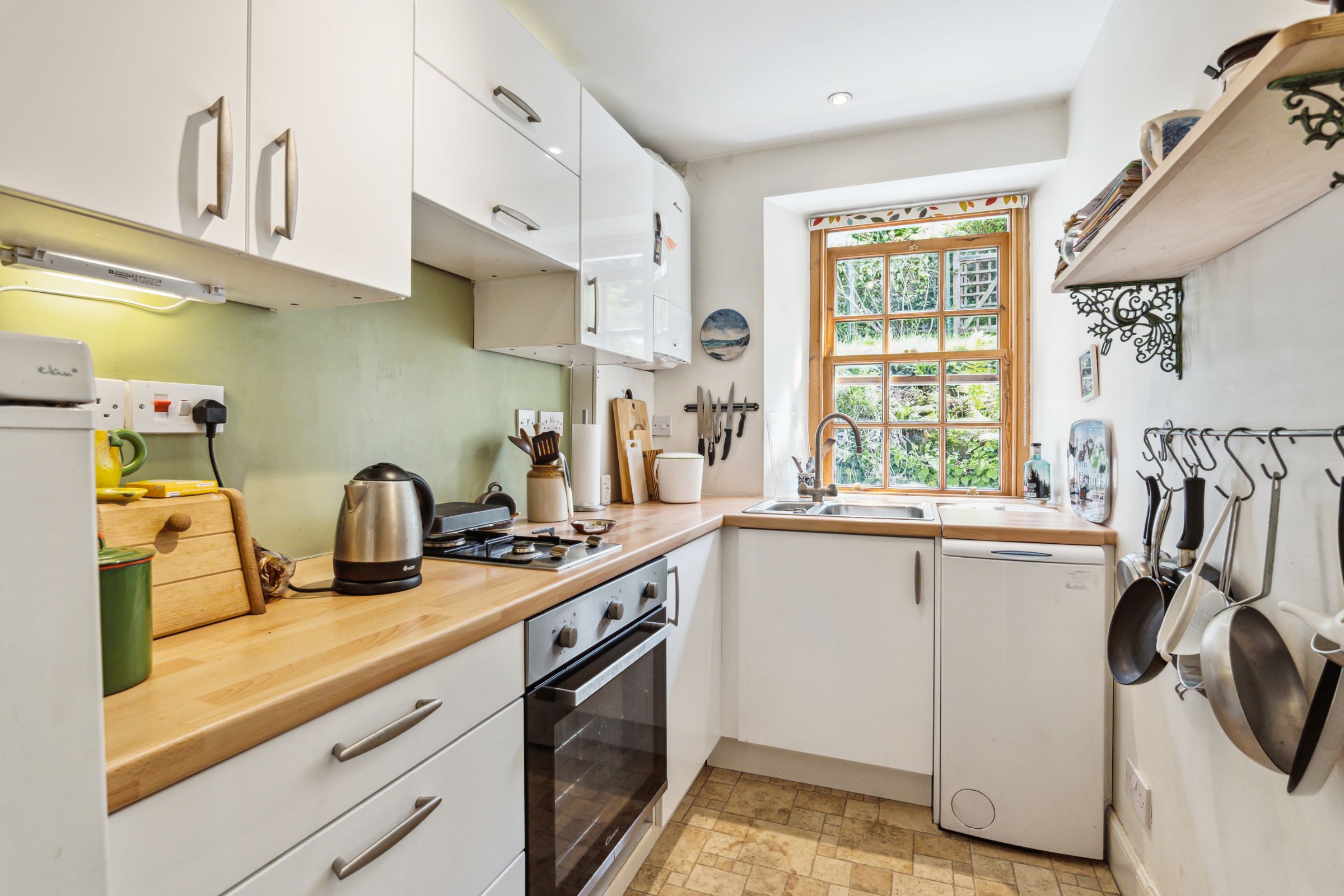 Living room with gas fire installed, modern galley style kitchen, bedroom with outlook onto the rear private garden, modern bathroom and large storage cupboard.