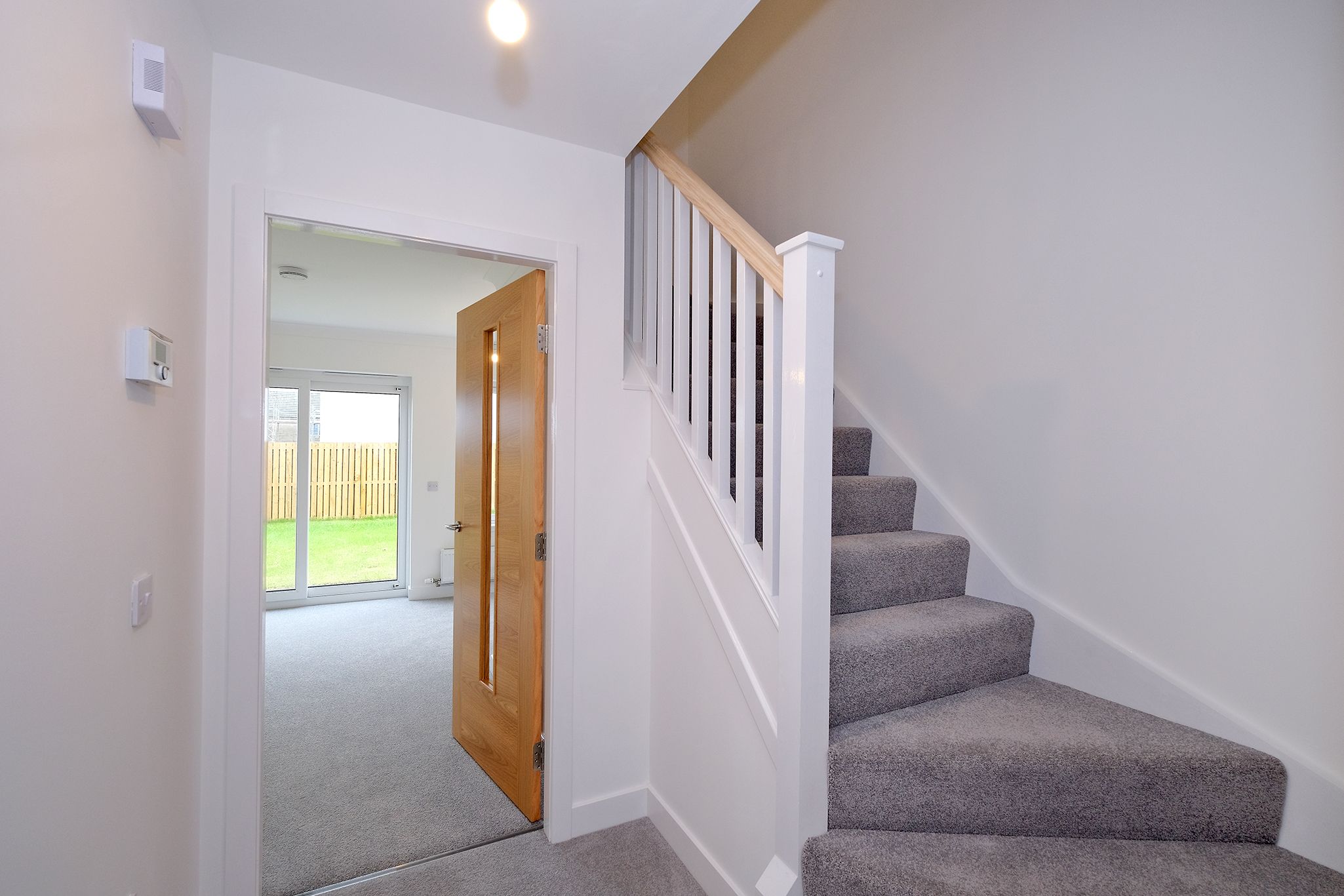 As you enter the Lewis, a 3-bedroom end terrace home in Glenboig, you will step into a long, sweeping hallway, passing a convenient storeroom and downstairs WC. The expansive, open plan lounge and dining room are located at the rear of the home, adjoining the garden. The kitchen overlooks the front of the property and has high-quality cabinets and appliances from renowned European designers.